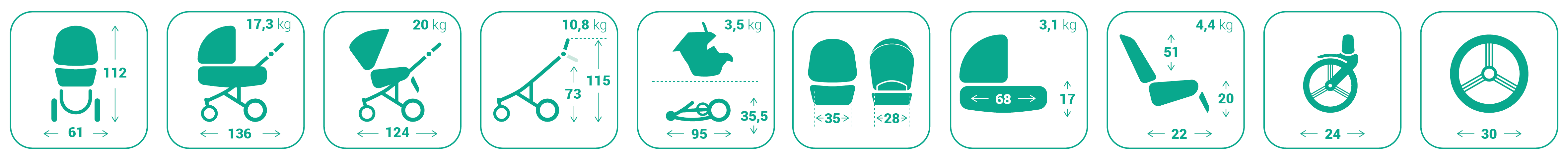 | Комплектація коляски | Антимоскітна сітка, Дощовик, Кошик для покупок, Автокрісло, Прогулянковий блок, Підсклянник, Сумка для дитячих речей |